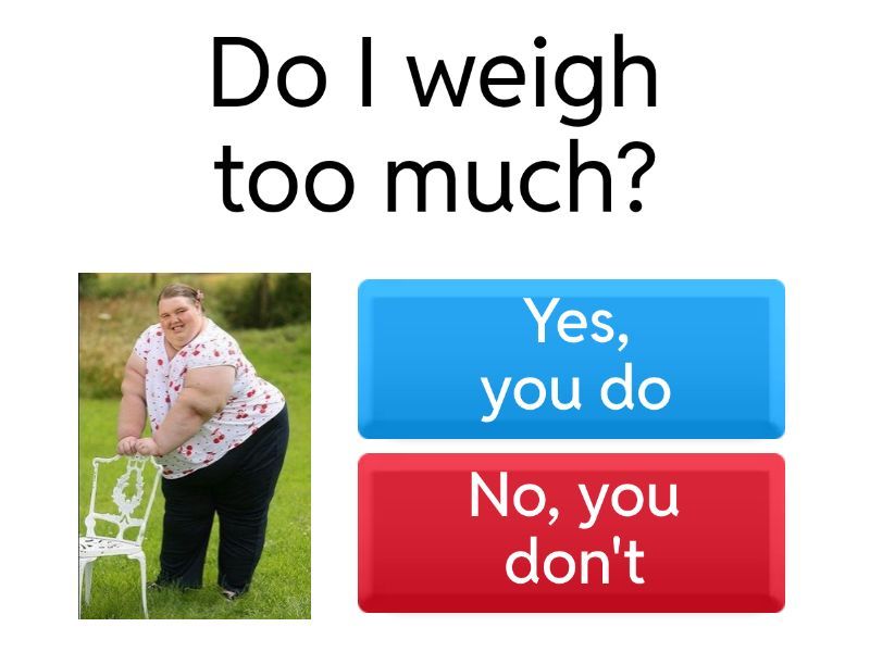 1) Do I weigh too much? a) Yes, you do b) No, you don't 2) Does he like burgers? a) No, he doesn't b) Yes, he does 3) Does it cost much? a) No, It don't b) No, It doesn't 4) Do we need sunglasses? a) Yes, we do b) Yes, we does 5) Do they come from Japan? a) Yes,they do b) No, they don't 6) ___ it usually snow in July? No, it___ a) Does,don't b) Does, doesn't 7) ____ you know the answer? No, I____ a) Do, don't b) Don't, do 8) ___ you__ TV? a) Do,watches b) Do,watch 9) __he __ a car? a) Does,drive b) Does,drives 10) __ she __ three languages? a) Does,speaks b) Does,speak