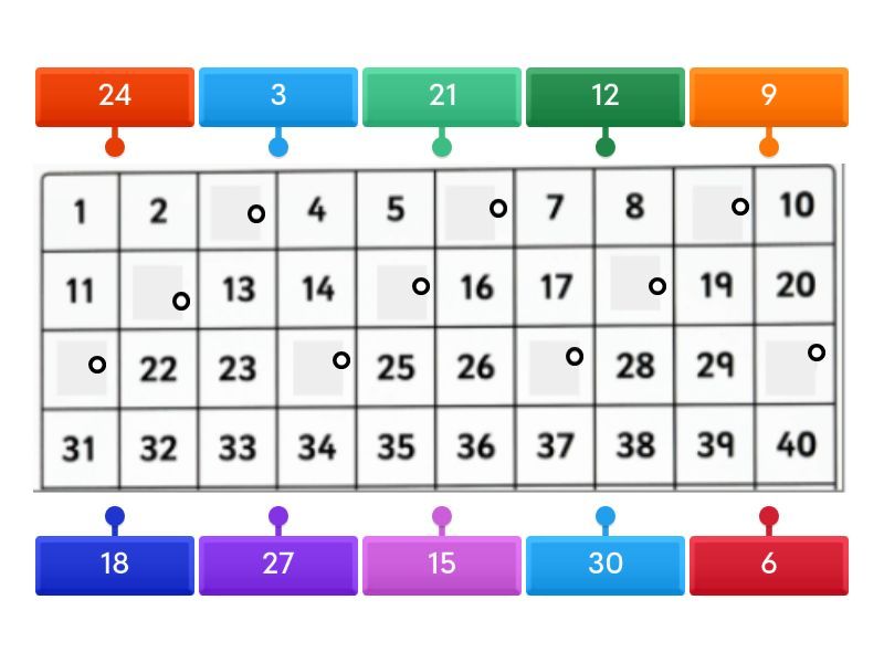 3, 6, 9, 12, 15, 18, 21, 24, 27, 30.