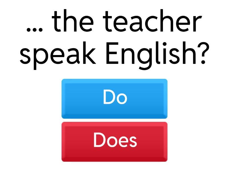 1) ... the teacher speak English? a) Do b) Does 2) ... your friends have a Japanese car? a) Do b) Does 3) ... you play football? a) Do b) Does 4) What ... they have for breakfast? a) do b) does 5) Where ... the students live? a) do b) does 6) ... your cousin go to bed at 8:00? a) Do b) Does 7) When ... we have dinner? a) do b) does 8) ... he get up early? a) Do b) Does 9) ... Sam and Paula watch TV at night? a) Do b) Does 10) ... your brother practice karate? a) Do b) Does 11) What time... you leave to work? a) do b) does 12) Why ... Tania study English? a) do b) does 13) ... your brother like to go out in the evening? a) Do b) Does 14) ... you like to go to the cinema with me? a) Do b) Does 15) ... your brothers live in Ireland? a) Do b) Does 16) ... you like beer? a) Do b) Does 17) ... Ximena have a lot of friends? a) Do b) Does 18) ... you drive to work? a) Do b) Does 19) ... your parents drink coffee? a) Do b) Does