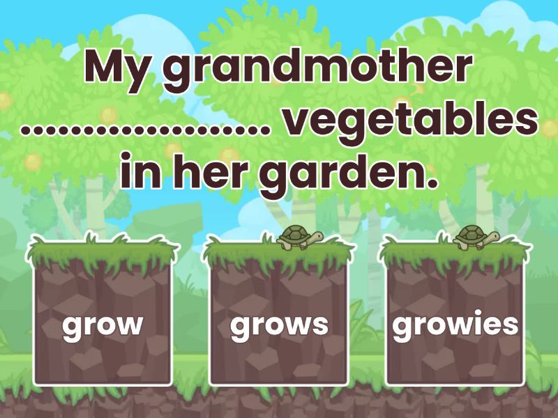 1) My grandmother .................... vegetables in her garden. a) grow b) grows c) growies 2) She ........... have a car. a) doesn´t b) dont c) does 3) She ............... eight hours every night. a) sleep b) sleeps c) sleepies 4) .............. you read the newspaper? a) Do b) Does c) Doen´t 5) ............. she take the bus? a) Do b) Does c) Don´t