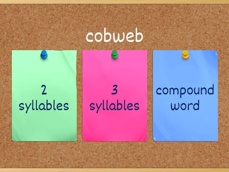 1) cobweb a) 2 syllables b) 3 syllables c) compound word  2) comic a) 2 syllables b) 3 syllables c) compound word  3) cutlass a) 2 syllables b) 3 syllables c) compound word 4) dimwit a) 2 syllables b) 3 syllables c) compound word 5) dismiss a) 2 syllables b) 3 syllables c) compound syllable 6) fabric a) 2 syllables  b) 3 syllables c) compound word 7) uphill a) 2 syllables b) 3 syllables c) compound word