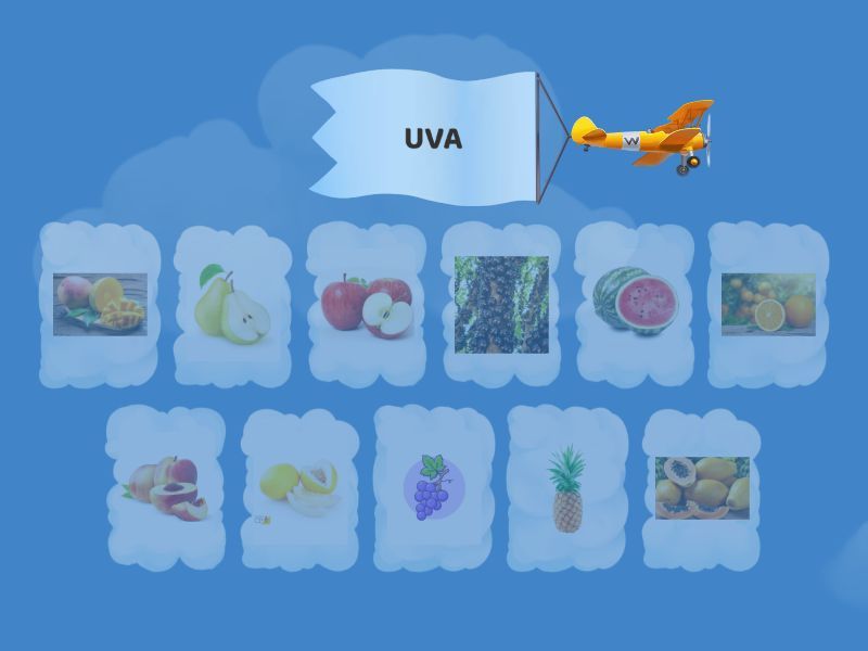 UVA , MAÇA, PERA, ABACAXI , MELANCIA , MAMÃO , LARANJA , PÊSSEGO , MELÃO , MANGA , JABUTICABA,