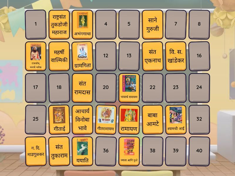 गीतरामायण - ग. दि. माडगूळकर , भावार्थ रामायण - संत एकनाथ , श्यामची आई - साने गुरुजी , रामायण - महर्षी वाल्मिकी , दासबोध, मनाचे श्लोक - संत रामदास , ययाति - वि. स. खांडेकर , ज्वाला आणि फुले - बाबा आमटे , ग्रामगिता - राष्ट्रसंत तुकडोजी महाराज , अभंगगाथा - संत तुकाराम , गीताई - आचार्य विनोबा भावे , गीतारहस्य - लोकमान्य टिळक , आनंदमठ - बंकिमचंद्र चटर्जी , गीतांजली - रवींद्रनाथ टागोर , झेंडूची फुले - प्र. के. अत्रे , बलूतं - दया पवार , केकावली - मोरोपंत , मृत्युंजय, छावा - शिवाजी सावंत , आमचा बाप आणि आम्ही - नरेंद्र जाधव , माझी जन्मठेप - वि. दा. सावरकर , अग्निपंख - ए. पी. जे. अब्दुल कलाम ,