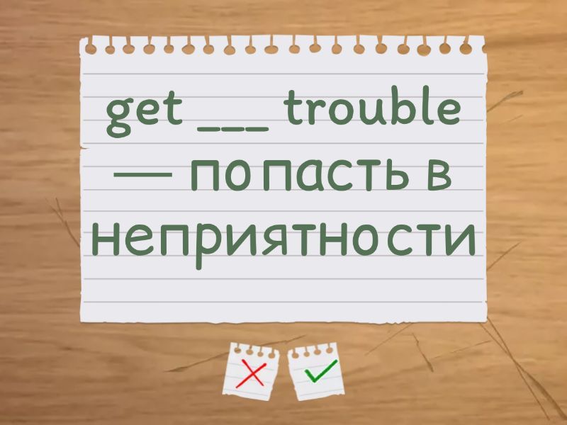 follow ___ sb’s footsteps — идти по стопам - follow in sb’s footsteps, take a look ___ sth — взглянуть - take a look at sth, put ___ into action — приводить в действие - put into action, put ___ in order — привести в порядок - put sth in order, take sb ___ another person — принять за другого - take sb for another person, break the habit ___ a lifetime — бросить старую привычку - break the habit of a lifetime, take ___ to heart — принимать близко к сердцу - take close to heart, trace its roots back ___ — уходить корнями - trace its roots back to, put effort ___ sth — вкладывать силы - put effort into sth, set your mind ___ sth — задуматься - set your mind to sth, be ___ the point — быть неважным - be beside the point, stare ___ the distance — смотреть вдаль - stare into the distance, have an (no) interest ___ sth — интересоваться - take an interest in sth, go ___ any lengths — стараться из всех сил - go to any lengths, put sb ___ a bad mood — испортить настроение - put sb in a bad mood, be ___ out of one’s mind — выскочить из головы - slip one’s mind, get ___ trouble — попасть в неприятности - get into trouble, come ___ a surprise — быть неожиданным - come as a surprise, play a role ___ sth — сыграть роль - play a role in sth, take (no) notice ___ sb/sth — (не) обратить внимание - take (no) notice of sb/sth,