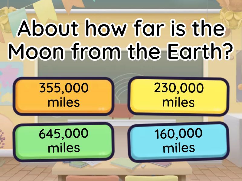 1) About how far is the Moon from the Earth? a) 355,000 miles b) 230,000 miles c) 645,000 miles d) 160,000 miles 2) Which 2 words from this sentence have names of objects from the universe? Sentence: A blackhole named Sagittarius A lies in the center of the Milky Way. a) blackhole b) Sagittarius A c) center d) lies e) Milky Way f) the 3) Will the Andromeda and Milky Way galaxies collide? a) Yes b) No 4) Is there something called the "Big Boom"? a) Yes b) No 5) How did the universe form? a) It formed because of nothing b) It formed because of the Big Bang c) It just randomly appeared 6) Is there a scientific theory behind White Holes? a) Yes b) No 7) Do Black Holes suck in or suck out? a) suck in b) suck out 8) Are there really White Holes? Explain. (Needs additional) (Select continue) a) Have your teacher give out blank sheets of paper. b) Then, write down your name and date. c) Next, write your explanation. d) Lastly, check over your explanation and submit it to your teacher. e) Continue