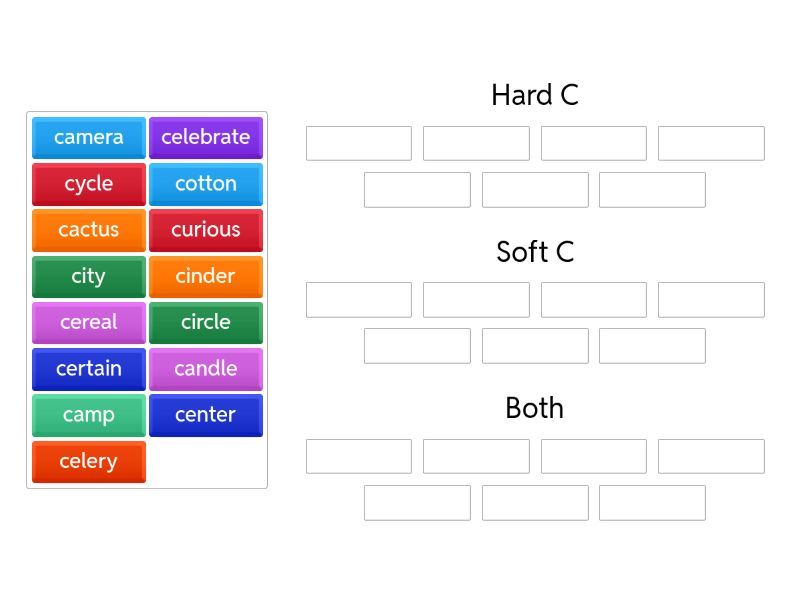 Hard C: camp, candle, cotton, curious, camera, cactus, Soft C: center, city, cereal, celery, cinder, celebrate, certain, Both: circle, cycle,