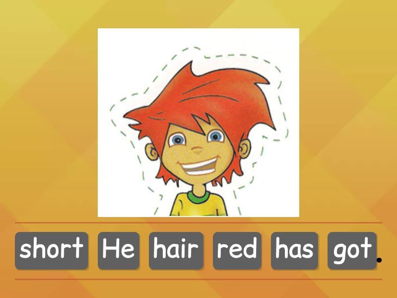 It has got small dark eyes. , She has got long fair hair., She has got big blue eyes. , He has got small green eyes., He has got short red hair., She has got big blue eyes. , She has got long fair hair., He has got short dark hair. , He has got short red hair., She has got long darkhair., He has got small brown eyes. ,