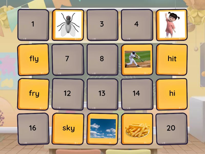 fry, fly, hi, hit, sky, spy, spin, go, stop, map,