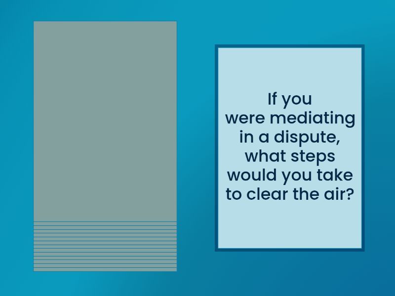 Have you ever witnessed a dispute between neighbours? What was it about? , Do you think arguments between friends are healthy or harmful? Why? , How do you usually react if a row quickly gets out of control? , What could cause a pay dispute at work? , How should people handle a domestic dispute without escalating it? , Have you ever seen a workplace dispute? How was it resolved? , If you were mediating in a dispute, what steps would you take to clear the air? , Do you find it easy to make up after a quarrel? Why or why not? , Would you be willing to compromise if you strongly believed you were right? , Why do some disputes escalate instead of calming down? , What situations might force someone to leave after a quarrel? , Have you ever seen people come to blows? How did it end? , Are you still on speaking terms with everyone you’ve had an argument with? , Do you think tension in relationships can sometimes be positive? , When someone is kicked out of a group or home, how should others react? .