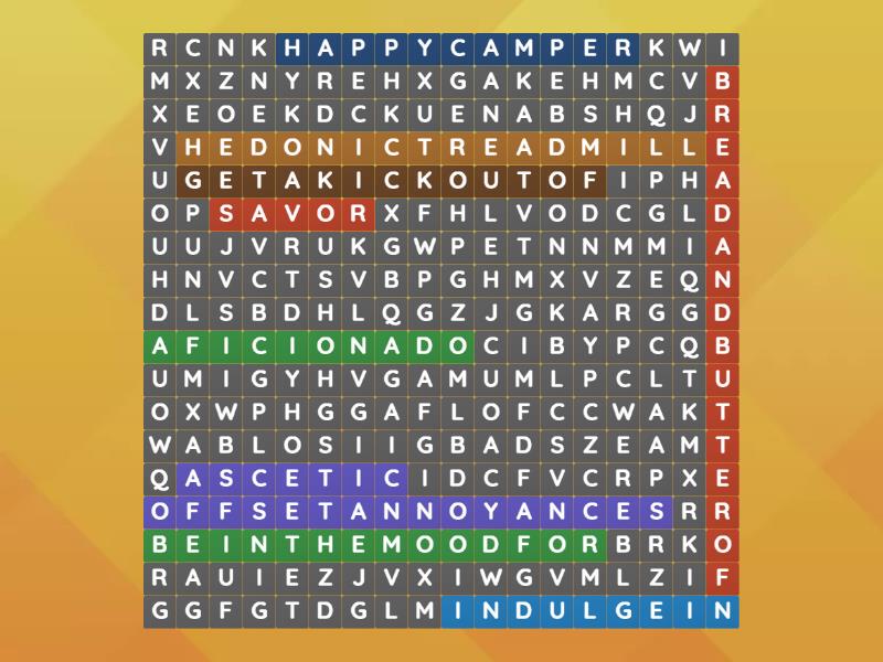 aficionado , ascetic , savor , indulge in , get a kick out of , happy camper , hedonic treadmill, be in the mood for, offset annoyances , bread and butter of,