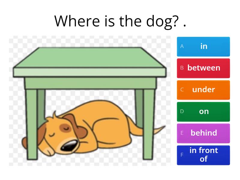1) Where is the dog? . a) in  b) between c) under d) on e) behind f) in front of 2) Where is the man? a) on b) in c) next to  d) behind e) under f) between 3) Where is the cat? a) on b) between c) under d) next to e) in front of f) in 4) Where is the ball? It is _________ the box. a) on b) between c) next to  d) in e) under f) in front of 5) Where is the cat? a) next to b) between c) behind d) under e) in f) in front of 6) Where is the boy? a) behind b) under c) on d) in e) in front to f) next to 7) Where are the shoes? a) behind b) under c) between d) in front of e) next to f) on 8) Where is her finger? a) on b) in c) under d) behind e) next to f) in front of 9) Where are the people ? a) behind b) in front of c) between d) under e) on f) in 10) where is the phone? a) under b) in front of c) between d) behind e) on f) in 11) Where are the pillows? a) behind b) in front of c) between d) under e) on f) in 12) Where is the baby?  a) behind b) in front of c) between d) in e) on f) under