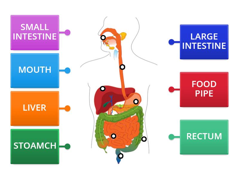 MOUTH, FOOD PIPE, LIVER, STOAMCH, SMALL INTESTINE, LARGE INTESTINE, RECTUM.