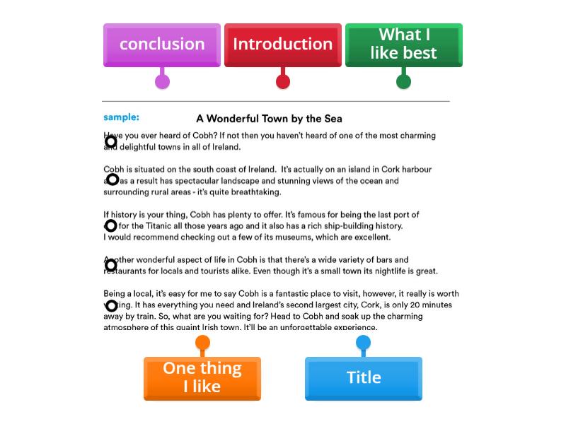 Title, Introduction, One thing I like, What I like best, conclusion.