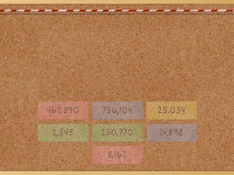 2,345 - Two thousand three hundred forty five, 3,167 - Three thousand one hundred sixty seven, 14,898 - Fourteen thousand eight hundred ninety eight, 25,034 - Twenty five thousand thirty four, 230,770 - Two hundred thirty thousand seven hundred seventy, 462,890 - Four hundred sixty two thousand eight hundred ninety, 756,104 - Seven hundred fifty six thousand one hundred and four,