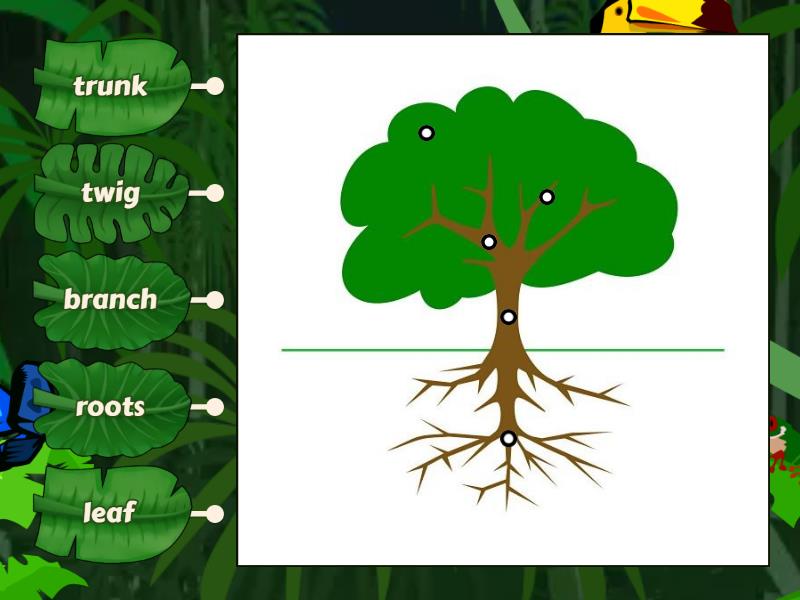 leaf, roots, twig, trunk, branch.