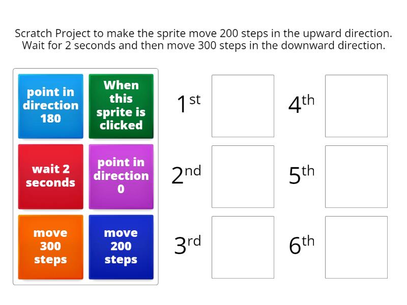 When this sprite is clicked, point in direction 0, move 200 steps, wait 2 seconds, point in direction 180, move 300 steps.