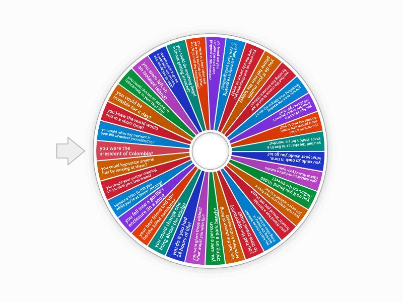 1) you were left on an isolated island? 2) you do if you found 10.000 dollars on the street? 3) you were the president of Colombia? 4) you could be invisible for a day? 5) you fell into a gorilla’s enclosure (in a zoo)? 6) your mother turned into a zombie right in front of your eyes? 7) you were given three wishes? What would you wish for? 8) you could choose an animal to reincarnate in your next life? 9) you had the opportunity to time travel once? 10) you had the chance to end all war by killing five innocent children? 11) you had to choose between winning the lottery or living twice as long? 12) you had the chance to live in a space station for six months? 13) you had a money tree growing in your front yard (garden)? 14) your best friend told you he/she killed someone? 15) you saw someone stealing something from the grocery store? 16) you caught your partner cheating on you with your best friend? 17) you could do anything illegal without getting arrested? 18) someone tries to rob you while you’re at home sleeping? 19) your friend has a terrible breath? Would you tell them? 20) you were on a train and a person who smells horrible sits next to you? 21) you saw a person crying on a park bench? 22) you figured out the password to your partner’s cell phone right now? 23) you could hypnotize anyone just by looking at them? 24) you found out you (or your partner) were pregnant at this moment? 25) you were at a hair salon and got a really bad haircut? What would you tell the hairdresser? 26) you do if you had 24 hours of life? 27) you do if your mobile phone fell into the toilet? 28) you had the chance of living anywhere in the world? 29) you could go back in time, what year would you go to? 30) you knew the world would end in a short time? 31) you could shape your own future just as you wanted it to be? 32) you could change one thing about the world? 33) you could relive any moment in your life whenever you wished to? 34) you woke up and discovered you were the only person on earth? 35) you were able to go on a date with any person, who would you go with?