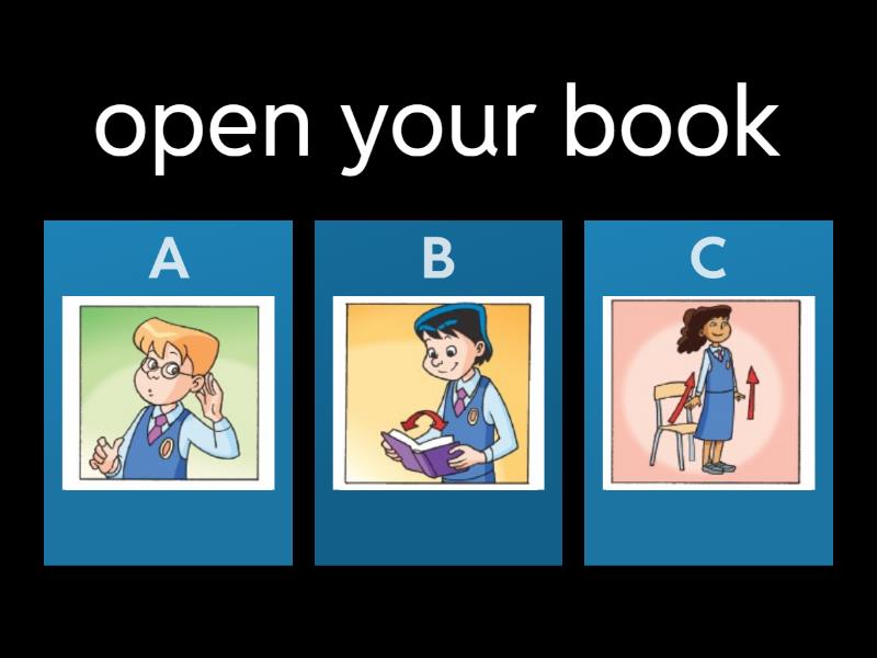1) open your book a) b) c) 2) listen a) b) c) 3) work in pair a) b) c) 4) speak a) b) c) 5) stand up a) b) c) 6) read a) b) c) 7) sit down a) b) c) 8) close you book a) b) c) 9) write a) b) c)