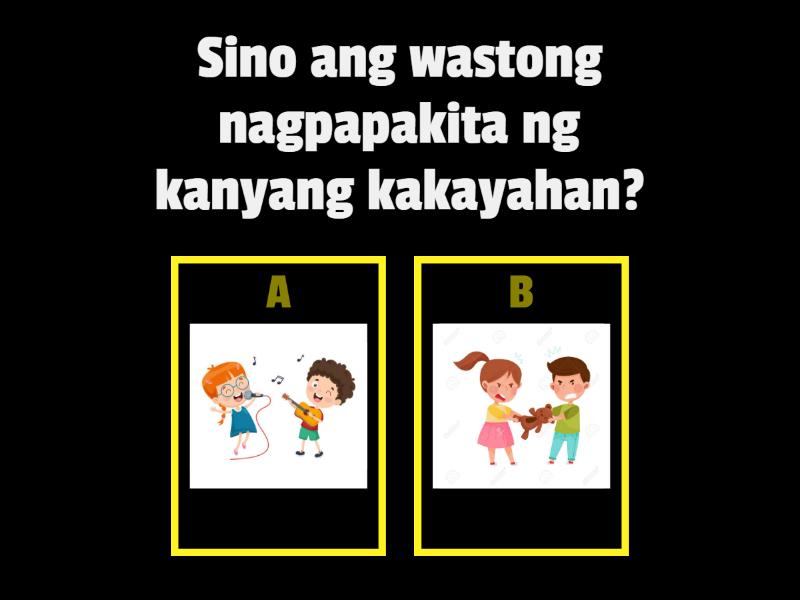 1) Sino ang wastong nagpapakita ng kanyang kakayahan? a) b) 2) Sino ang wastong nagpapakita ng kanyang kakayahan? a) b) 3) Sino ang wastong nagpapakita ng kanyang kakayahan? a) b) 4) Sino ang wastong nagpapakita ng kanyang kakayahan? a) b) 5) Sino ang wastong nagpapakita ng kanyang kakayahan? a) b) 6) Sino ang wastong nagpapakita ng kanyang kakayahan? a) b) 7) Sino ang wastong nagpapakita ng kanyang kakayahan? a) b)