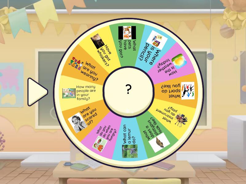 What are you wearing?, Have you got whiskers?, What pets have you got?, Where is your pencil?, How is the weather today?, What sport do you like?, What instrument do you play?, What does a platypus look like?, What can a lemur do?, What do you do when you are hungry?, What are you scared of?, How many people are in your family?.
