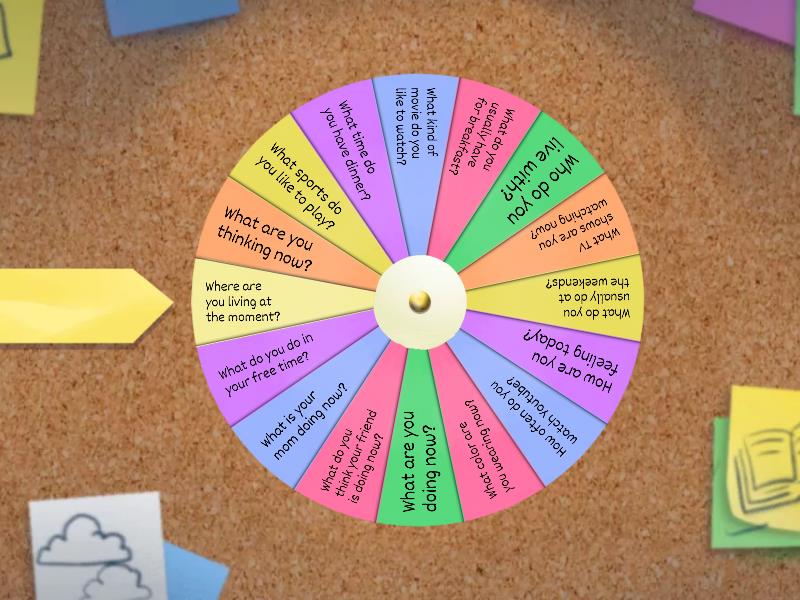 How often do you watch Youtube?, What TV shows are you watching now?, What do you do in your free time?, What color are you wearing now?, How are you feeling today?, Where are you living at the moment?, Who do you live with?, What is your mom doing now?, What time do you have dinner?, What do you usually do at the weekends?, What do you think your friend is doing now?, What sports do you like to play?, What do you usually have for breakfast?, What are you doing now?, What are you thinking now?, What kind of movie do you like to watch?.