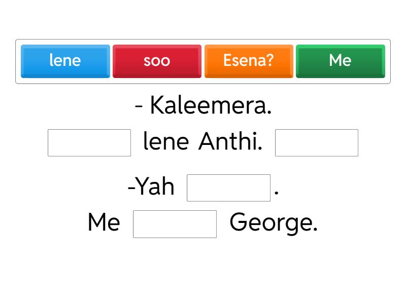 - Kaleemera. ____ lene Anthi. ____ -Yah ____. Me ____ George.