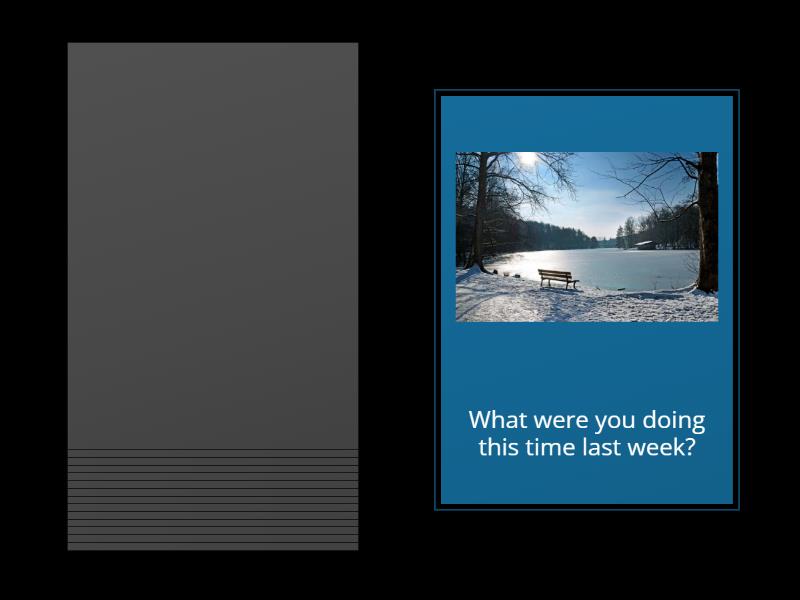 What were you doing yesterday at 7 o'clock in the evening?, What did you do to keep fit 5 years ago?, What food tasted the most fantastic to you when you were a child?, What were you dreaming about when the alarm clock went off this morning?, When did you meet your best friend?, Who did you see at the weekend?, What were your family doing when you came back home yesterday?, Did you use your phone a lot 2 years ago?, What were you doing this time last week?, Did you have any hobby when you were a child? What did you use to do in your free time?, What were you thinking about before you went to bed yesterday?, What was your teacher wearing at the 1st lesson?, What did you buy with your first salary?, Is there something you used to be afraid of in the childhood?, What is the place you used to visit a lot when you were a child?.