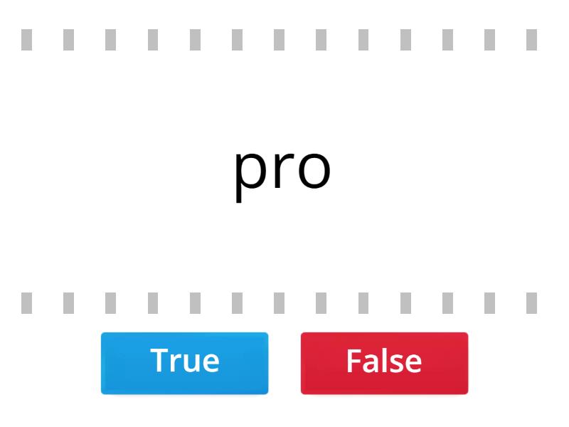 True: pro, sky, be, ply, go, we, sty, so, fly, she, False: got, sun, bed, rob, lot, box, back, hit, bet, dog,