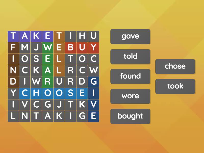 wear - wore, take - took, buy - bought, choose - chose, find - found, give - gave, tell - told,