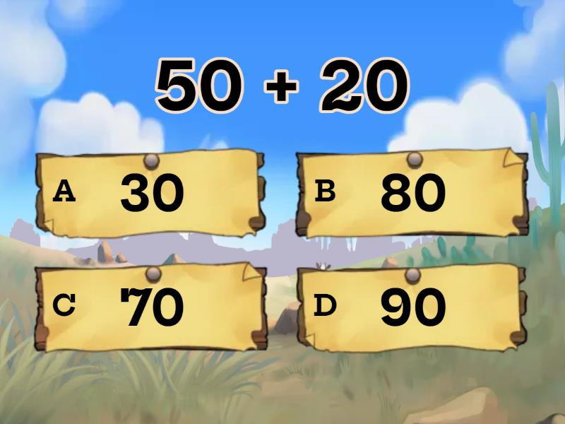 1) 20 + 20 a) 25 b) 30 c) 40 d) 50 2) 50 - 30 a) 20 b) 25 c) 30 d) 80 3) 30 + 40 a) 80 b) 70 c) 10 d) 60 4) 10 + 60 a) 70 b) 50 c) 40 d) 80 5) 50 + 20 a) 30 b) 80 c) 70 d) 90 6) 50 + 40 a) 10 b) 80 c) 100 d) 90 7) 80 - 40 a) 50 b) 40 c) 30 d) 90 8) 40 + 20 a) 60 b) 20 c) 50 d) 70 9) 30 + 50 a) 20 b) 80 c) 70 d) 90 10) 70 + 20 a) 50 b) 80 c) 100 d) 90