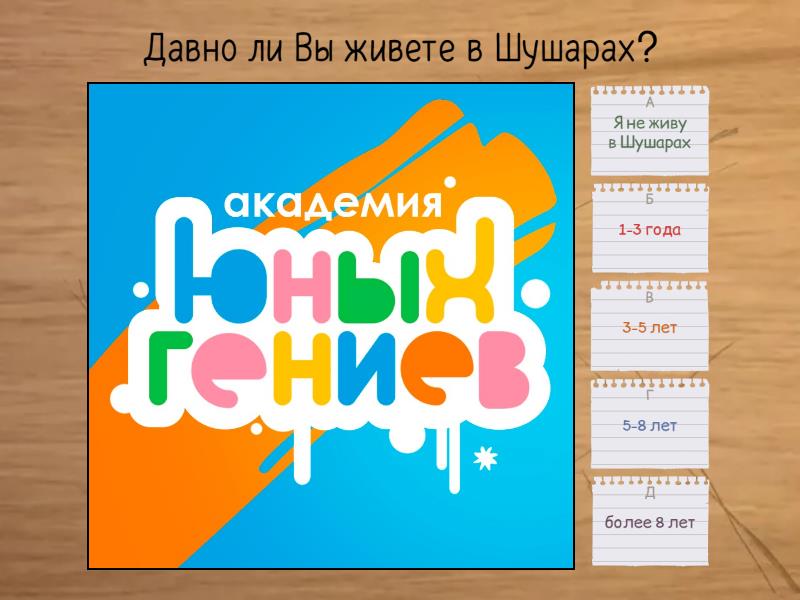 1) Давно ли Вы живете в Шушарах? a) Я не живу в Шушарах b) 1-3 года c) 3-5 лет d) 5-8 лет e) более 8 лет 2) Любите ли Вы кофе? a) Да b) Нет 3) Какую кондитерскую или пекарню в Шушарах вы посещаете чаще всего? a) Лавка пекаря b) Люди любят c) Булочная Вольчека d) 85 цех e) Север Метрополь f) Другое 4) Есть ли у Вас дети? a) Нет b) Есть, но они старше 14 лет c) Есть, возраст до 7 лет d) Есть, возраст от 8 до 14 лет 5) Ваши дети ходят в Шушарский детский сад или школу? a) Да, в Шушарскую b) Нет, в другом районе c) Нет детей 6) Какой детский клуб, кроме нашего, посещают Ваши дети? a) Мамарада b) Клубок c) Шаг вперед d) Все свои e) Suffix f) другое 7) А вы знали, что у нас можно отметить детский День Рождения? a) Да b) Нет 8) Какое направление для ребенка вы бы предпочли? a) хореография для детей до 8 лет b) танцы для детей 9-14 лет c) Робототехника Lego d) обучение чтению e) театральная студия f) рисование