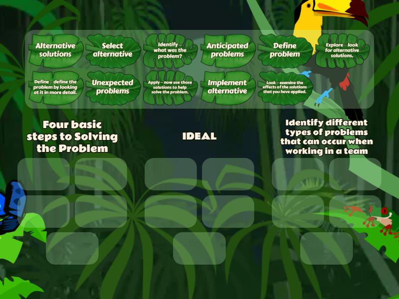 Four basic steps to Solving the Problem: Define problem, Alternative solutions, Select alternative, Implement alternative, IDEAL : Identify – what was the problem?, Define – define the problem by looking at it in more detail., Explore – look for alternative solutions., Apply – now use those solutions to help solve the problem., Look – examine the effects of the solutions that you have applied., Identify different types of problems that can occur when working in a team: Anticipated problems, Unexpected problems,