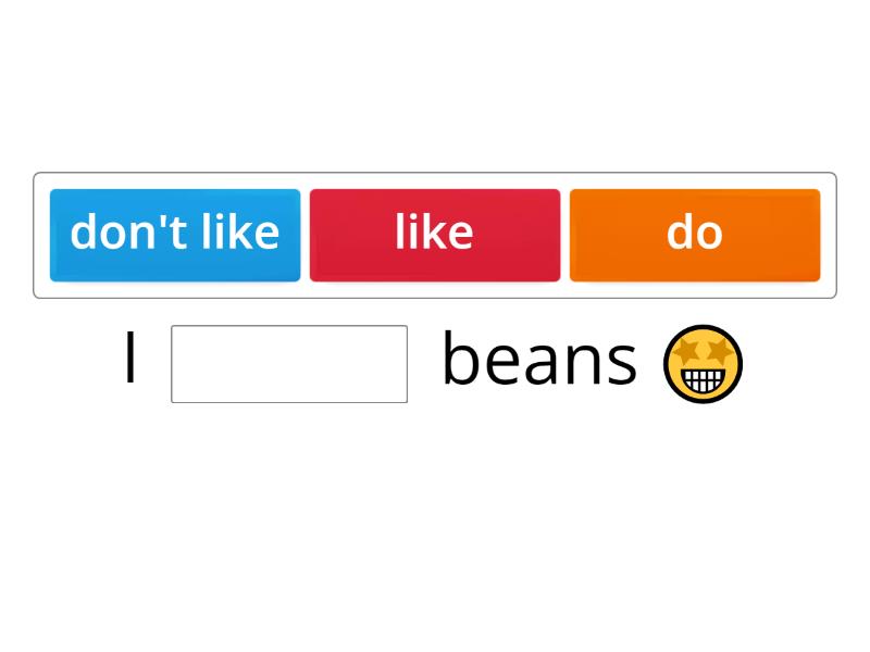 I ____ beans 🤩 Do you ____ ice-creams? 🤔 I ____ like salad 🤮 I don't ____ pies 🤮 ____ you like turkey? 🤔