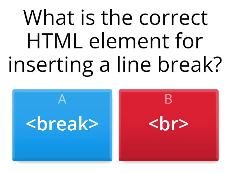 1) What is the correct HTML element for inserting a line break? a) <break> b) <br> 2) Choose the correct HTML element to define important text a) <important> b) <strong> c) <b> 3) What is the correct HTML for creating a hyperlink? a) <a url="http://www.itraxacademy.com">itrax</a> b) <a href="http://www.itraxacademy.com">itrax</a> 4) Which character is used to indicate an end tag? a) / b) \ 5) What is the correct HTML for making a checkbox? a) <checkbox> b) <check> c) <input type='checkbox'> 6) What is the correct HTML for making a text area? a) <textarea> b) <input type='text'> 7) An <iframe> is used to display a web page within a web page. a) false b) true 8) HTML comments start with <!-- and end with --> a) true b) False 9) Which doctype is correct for HTML5? a) <!DOCTYPE HTML5> b) <!DOCTYPE HTML> c) <!DOCTYPE HTML PUBLIC> 10) Who is making the Web standards? a) The World Wide Web Consortium b) Google c) MDN