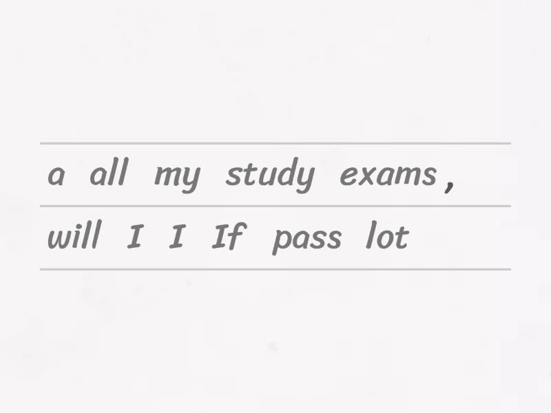 If I study a lot, I will pass all my exams, If you have fever, you will stay in bed, If it is sunny and hot, we will go to the beach., If it rains, I will need an umbrella, If you finish the competition first, you will be the winner., If you don't listen to the explanations, you won't understant this., If you interrupt the class, your teacher won't be happy., If you do not sleep many hours, you will be tired tomorrow., If I have money, I will buy a new dress., If they invite me, I will go to the party,