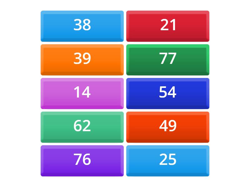25 - 2.5, 14 - 1.4, 38 - 3.8, 49 - 4.9, 76 - 7.6, 62 - 6.2, 54 - 5.4, 77 - 7.7, 21 - 2.1, 39 - 3.9,