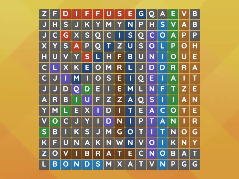 SOLID, LIQUID, GAS, SOLIDIFICATION, FREEZING, MELTING, VAPOURIZATION, EVAPORATION, CONDENSATION, DIFFUSE, BONDS, VIBRATE, SUBLIMATION, HEAT ENERGY,