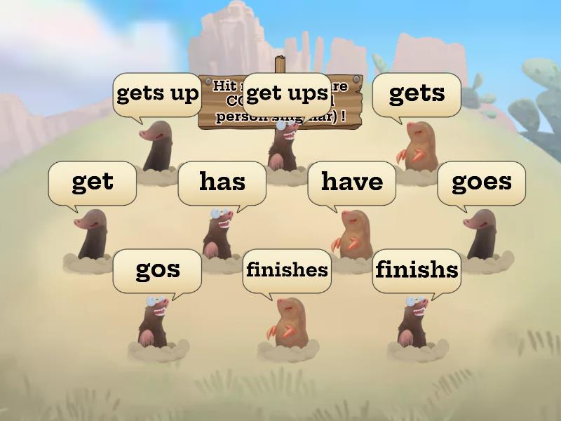 Correct: gets up, gets, has, goes, finishes, does, starts, brushes, studies, mixes, kisses, passes, plays, teaches, tidies, Incorrect: get ups, get, have, gos, finishs, do, startes, brushs, studys, mixs, kisss, passs, plaies, teachs, tidyes,