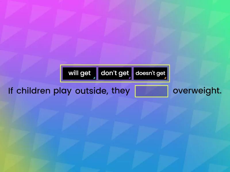 If I wake up late, ____ late for school. If the children ____, they burn the food. If Julie ____ a hat, she gets sunstroke If children don’t eat well, they ____ healthy If you mix water and electricity, you ____ a shock If people eat too many sweets, they ____ fat. If children play outside, they ____ overweight. If you heat ice, it ____. I feel good the next day if I ____ to bed early My sister passes her exams if she ____ hard.