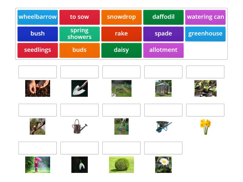 watering can, snowdrop, wheelbarrow, spring showers, daisy, spade, to sow, daffodil, seedlings, allotment, greenhouse, bush, rake, buds,