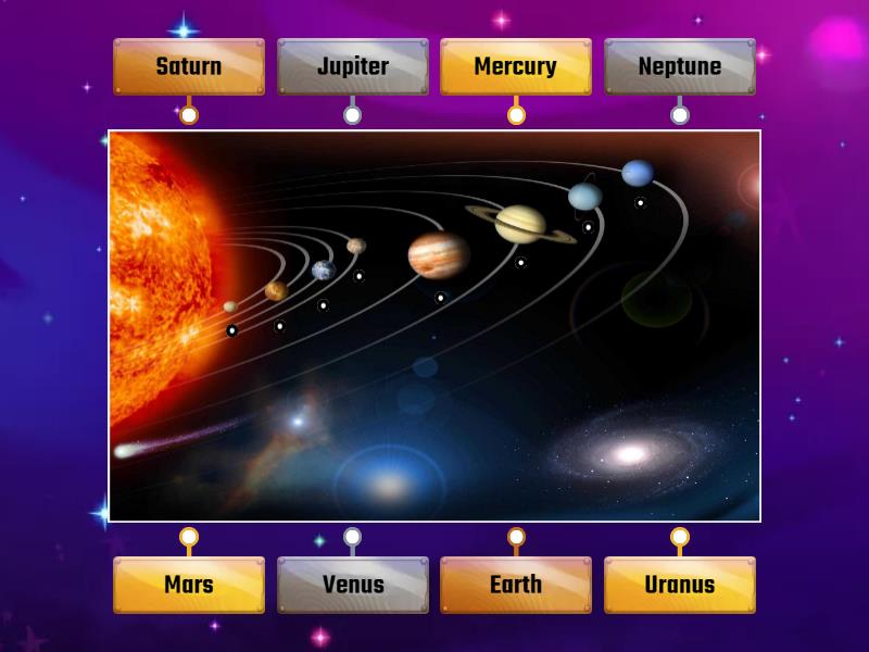 Mercury, Venus, Earth, Mars, Jupiter, Saturn, Uranus, Neptune.