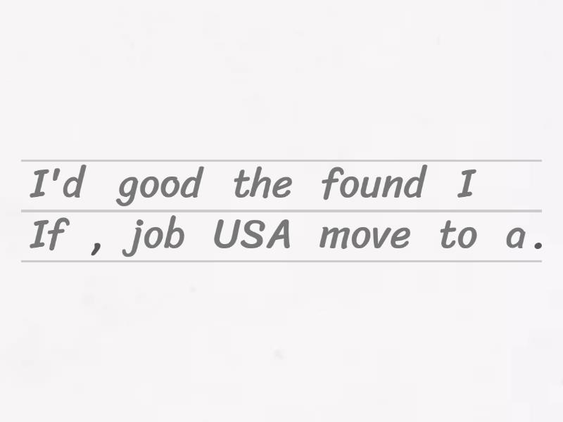 If I found a good job , I'd move to the USA., We'd buy this house if it had a pool., If you tried Indian food , I'm sure you'd say it's delicious., You'd learn more if you worked harder., If we rented a huge car , we could drive to the mountains for the weekend., We would see each other more often if we lived nearer., I wouldn't go to that restaurant if I were you., I'm keen on cycling but I wouldn't cycle if I had an electric scooter., Would you leave your country if you won a million dollars?, I love living here. I wouldn't be happy if I had to leave. , If I won the lottery, I would travel the world., If she had more time, she would learn to play the piano., If they were rich, they would buy a mansion., If it rained tomorrow, we would stay indoors and watch movies., If he spoke Spanish fluently, he would move to Spain., If I were taller, I would be a basketball player., If she had studied harder, she would have passed the exam., If they lived closer, we would see them more often., If I were you, I would quit that job., If it snowed in summer, we would build a snowman.,