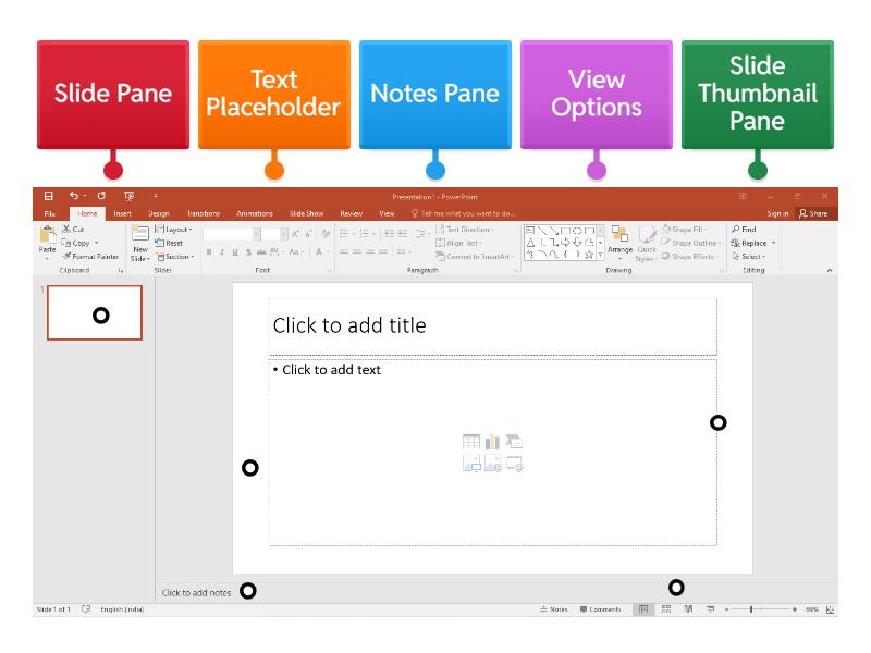 Notes Pane, Slide Pane, Text Placeholder, Slide Thumbnail Pane, View Options.