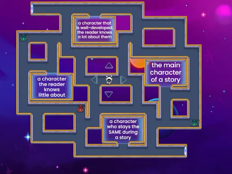 1) exposition a) the beginning of the story b) introduces the characters, setting, and point of view c) the end of the story d) a book 2) rising action a) the events of the story begin to create suspense as the character faces conflict b) the middle of the story c) the end of the story d) an introduction to the characters 3) climax a) the beginning of the story b) part of the story after the characters and setting are i c) the end of the story d) usually the most suspenseful part of a story; a turning point for the main character 4) falling action a) the part of the story where the tension lessens; the conflict is resolved b) the part in the story when the main character reaches—or fails to reach—their goal c) the end of the story d) part of the story after the characters and setting are introduced i 5) resolution a) part of the story after the characters and setting are introduced b) when the main character reaches—or fails to reach—their goal c) the end of the story; loose ends are tied up; sometimes there is a twist d) the section after the climax before the story is resolved 6) theme a) summary of the events of a story b) the plot elements in the order they occur c) the emotions are reader feels while reading d) message or lesson the author wants the reader to learn 7) setting a) where a story takes place b) when a story takes place c) when AND where a story takes place d) the theme 8) inciting incident a) the part that hooks the reader; sets the action in motion b) the problem in a story c) where we learn about the characters and the setting d) a flashback to earlier events of the story 9) external conflict a) a conflict that occurs within a character (fighting with thoughts or feelings) b) a conflict that occurs with an outside force 10) characters a) the animals that take part in a story b) the people that take part in a story c) the people, animals, and/or imaginary creatures that take part in a story d) the protagonist that takes part in the story 11) protagonist a) a character that changes from the beginning to end of a story b) the force working against the main character c) the main character d) a character the reader knows little about 12) antagonist a) the force working against the main character b) a character the reader knows a lot about c) the main character d) a character that stays the same throughout the story 13) dynamic character a) a character the reader knows little about b) the force working against the protagonist c) a character that is DIFFERENT from the beginning to the end of a story  d) a character that is well-developed 14) static character a) a character who STAYS the SAME during a story b) a character that the reader knows little about c) a character that is well-developed d) the villain 15) round character a) a character the reader knows little about b) the main character of a story c) a character who stays the SAME during a story d) a character that is well-developed; the reader knows a lot about them 16) flat character a) the force working against the main character b) a character that the reader knows little about c) a character who stays the SAME during a story d) the good guy 17) characterization a) the conflict between the protagonist and the antagonist b) indirect and direct characterization c) revealed in the exposition of a story d) the process used by an author to reveal the personality of a character 18) direct characterization a) determines the point of view of a story b) an author tells the reader EXACTLY what a character is like c) determines the inciting incident of a story d) an author hints at what a character is like using STAR (says, thinks, act/appears, reacts/responds)  19) indirect characterization a) an author hints at what a character is like using STAR (says, thinks, act/appears, reacts/responds) b) an author tells the reader EXACTLY what a character is like c) determines the point of view of a story d) determines the inciting incident of a story