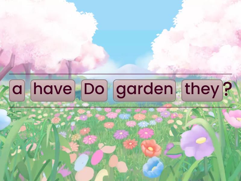 Do Danielle and Sam have four children?, Do your friends play scrabble every weekend?, Does John have a red car?, Does your sister have a big black dog?, Do you listen to music every day?, Do they have a garden?, Does she know how to make a solar system?, Do they speak dutch?, Do Jane and her sister visit their grandma every summer?, Do they like apple juice?,
