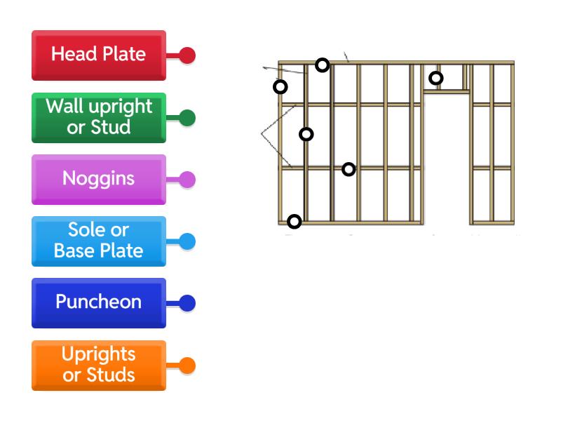 Sole or Base Plate , Head Plate , Uprights or Studs , Wall upright or Stud, Noggins , Puncheon.