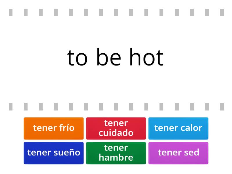 tener calor - to be hot, tener cuidado - to be careful, tener frío - to be cold, tener hambre - to be hungry, tener sed - to be thirsty, tener sueño - to be sleepy,