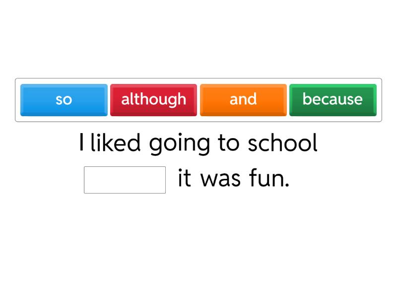 I liked going to school ____ it was fun. ____ it was difficult, maths was my favourite subject. I studied Arabic at school ____ I didn't study English. I was late for college ____ I had to wait outside. I finished my homework, ____ I was tired. In the UK children start school when they are four ____ in my country they start when they are six. I started coming to college ____ I want to improve my English. I have finished my studies ____ now I have to get a job. ____ it was very wet, we still walked to school. Did you prefer learning maths ____ history at school? ____ it was raining, we played outside. I am learning to drive ____ I haven't passed my test yet.