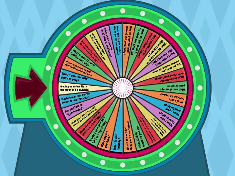 What’s your favorite game to play?, If you could be any animal what would you be and why?, What is your favorite holiday and why?, If we were at the grocery store, what would you like to buy?, If you could make three wishes, what would they be?, What’s your favorite song? Why do you like it?, What’s your favorite weather? Why do you like that weather?, What is your favorite time of the year? why?, What do you want to be when you grow up?, What would you to with a million dollars?, What do you like most about Saturdays?, What’s something that you don’t like?, Tell me about your favorite movie or TV show., What do you like the most about your family?, What sound annoys you the most?, What’s your favorite ice cream?, What’s your favorite food?, What’s your favorite color?, What is your favorite restaurant? What is your favorite thing to order?, If you could have any animal for a pet which one would you choose?, What kind of music do you like?, What is the weirdest thing you've ever eaten?, When is your birthday?, What city are you from?, Would you rather be a bird or a tiger? Why?, Would you rather have an airplane or a boat? Why?, Would you rather fly into outer space or go back in time? Why?, Are you left or right-handed?, Would you rather eat ice cream or chocolate bars?, Would you rather fly to the moon or be invisible?.
