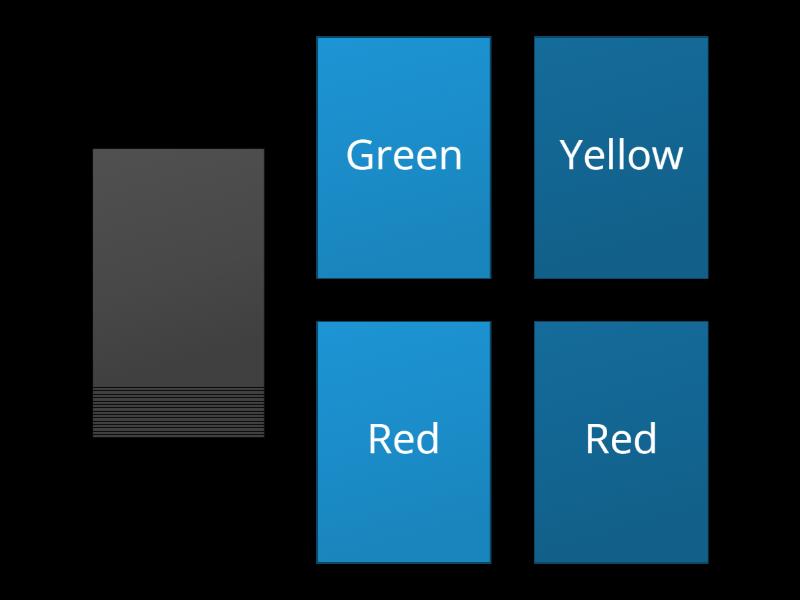 Red, Red, Red, Red, Red, Yellow, Yellow, Yellow, Yellow, Yellow, Blue, Blue, Blue, Blue, Blue, Green, Green, Green, Green, Green.